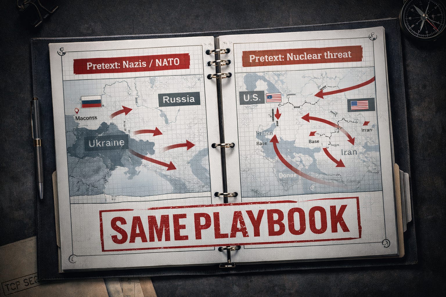 Putin needed a pretext. He got one—NATO expansion, Ukrainian Nazis, existential threat to Mother Russia. Every piece of it was fabricated or grotesquely inflated. Trump needed a pretext. He got one—nuclear countdown clock, imminent missiles aimed at American cities, 47 years of Iranian aggression that somehow required action this particular Saturday morning. Steve Witkoff went on Fox News and said Iran was “probably a week away” from bomb-making material. Nuclear policy analysts called it unsupported. Pentagon briefers had already told Congress the intelligence showed no Iranian plans to strike United States forces unless Israel moved first. Trump went ahead anyway.